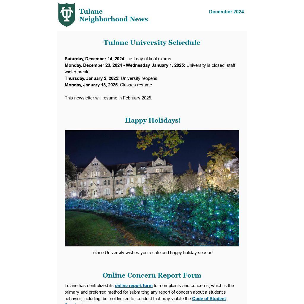 Tulane University wishes you a safe and happy holiday season!