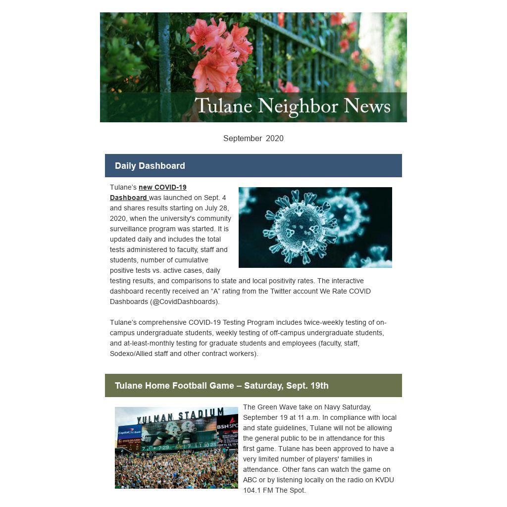 Want to know what is happening at Tulane on a daily basis? Sign-up for Tulane Today, Tulane's daily e-newsletter for the latest events and notable Tulane news.