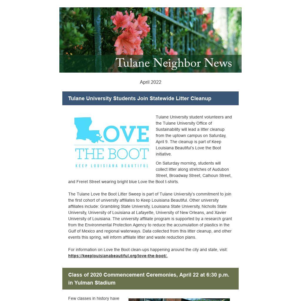 Tulane’s Class of 2020 Commencement Ceremony honors the graduating students from all of the university's schools and colleges. The ceremony will take place on Friday, April 22 at 6:30 p.m. in Yulman Stadium.